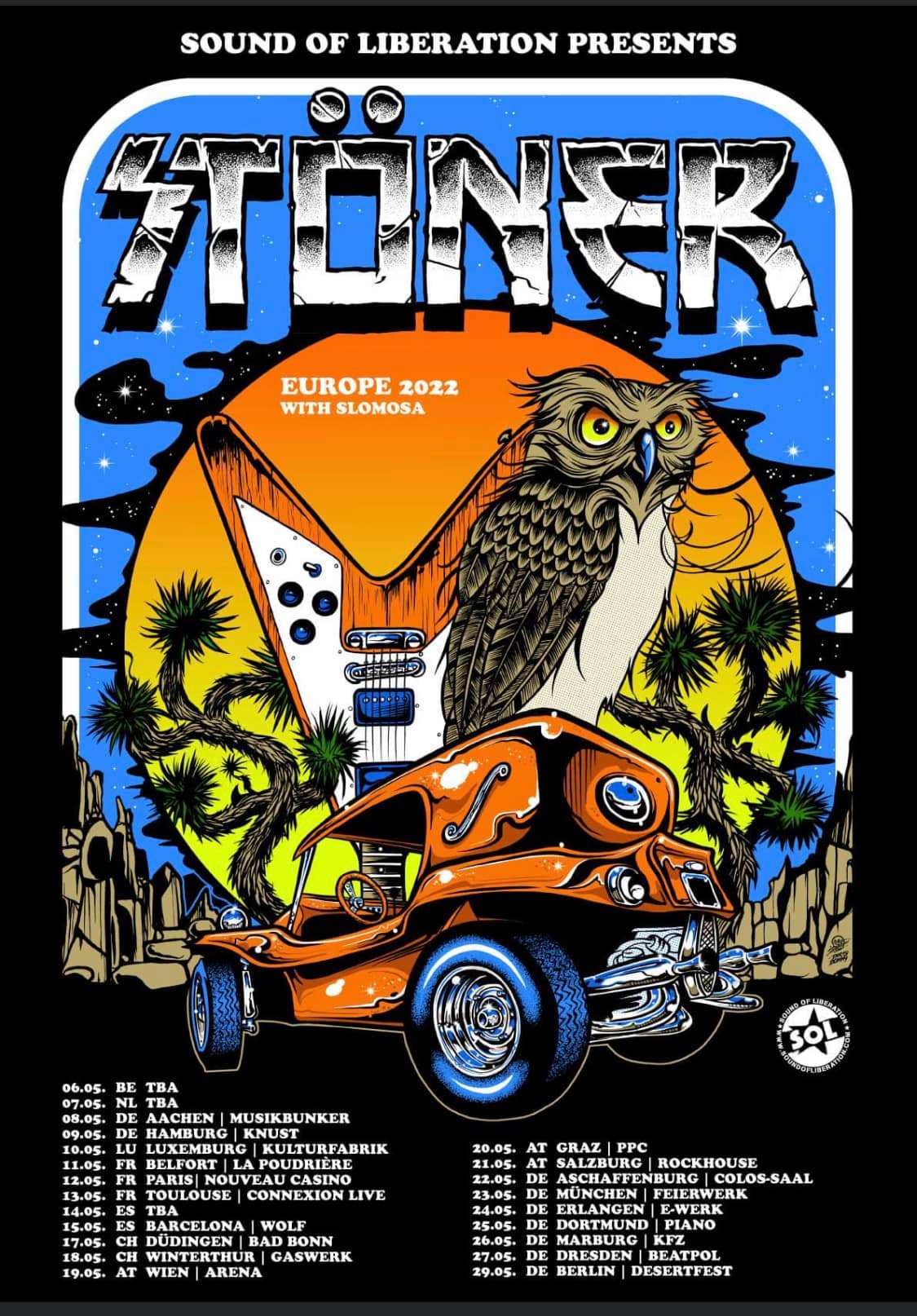 Stoner’s love for their early inspirations …bands like Blue Oyster Cult, Kiss, Ramones, Blue Cheer, Misfits, Black Flag, The Stooges, MC5 to name a few… result in big, groovy sunbaked riffs that can cruise low and slow but then floor it and run all the red lights. Live, this is a band about the magnetism between the players, the groove, the loose vibe, strait up badass rock and roll.